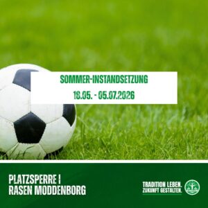 Rasenplatz Moddenborg wegen Sommer-Instandsetzung gesperrt